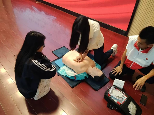 三亚市红十字会授课教师李红携一众队员进行应急救护培训,学院党总支书记马新源参会,学生党支部书记张笑晗主持培训启动仪式,学院支部老师们积极组织到培训当中,本次共计参加培训学生80人次。